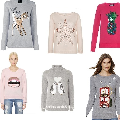 Although I’m not a big fan of novelty jumpers, I do like jumpers with a bit of sequin sparkle, so here’a round-up of my favourites that are currently available. There’s something for every pocket.