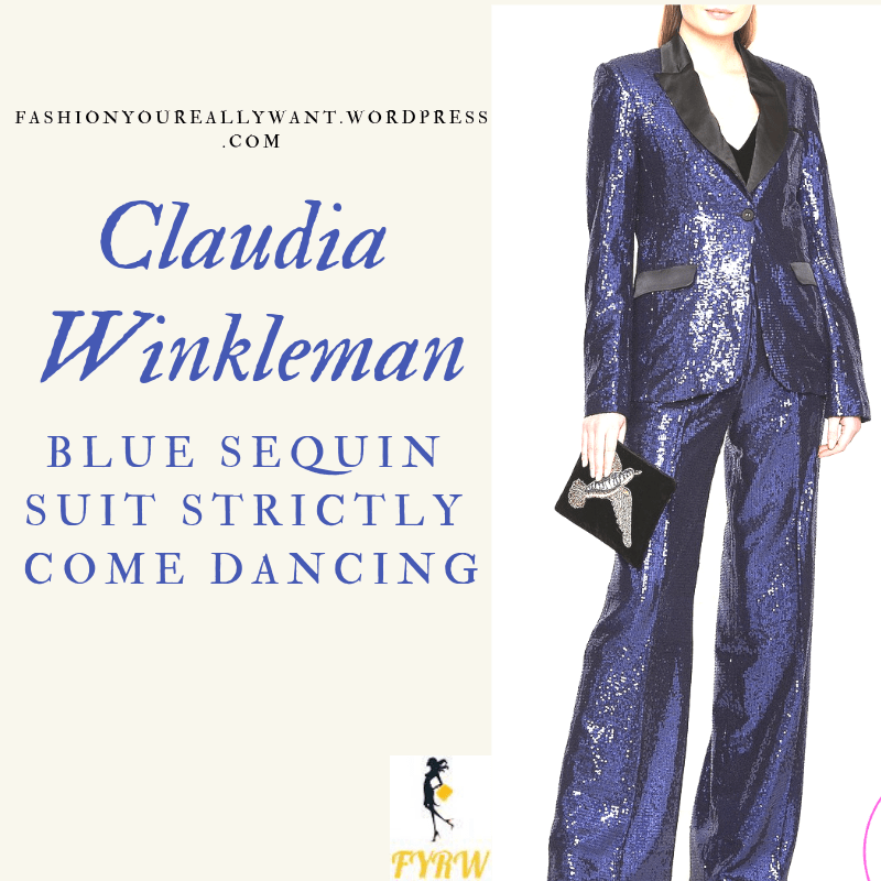 Claudia wore a Millie Mackintosh Women’s Sequin Sparkle Jacket in Blue £75 (sold out) and trousers £66 (sold out), for the BBC Strictly Come Dancing Final on Saturday 15th December 2018.