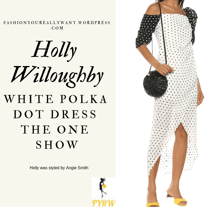 Holly wore a Rejina Pyo Layla polka-dot seersucker dress £690 in White, for The One Show on Thursday 7th March 2019.
