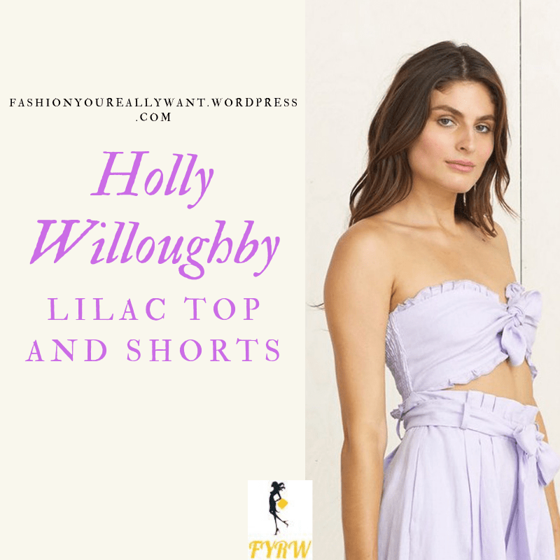 Holly wore Bec & Bridge Tropical Fever High Waisted Shorts in Lilac £140 and Bec & Bridge Tropical Fever Top £88 in Lilac , for her holiday at Six Senses Laamu over the Easter break in April 2019.
