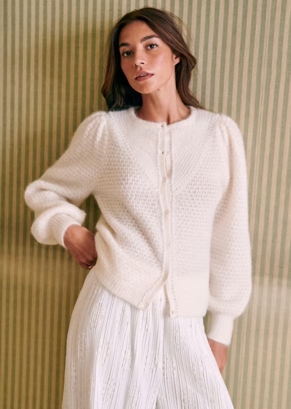 Holly wore a Sezane Solena Perle Cardigan in Ecru £125, for Wylde Moon on Thursday 2nd February 2023. Holly was styled by Danielle Whiteman.