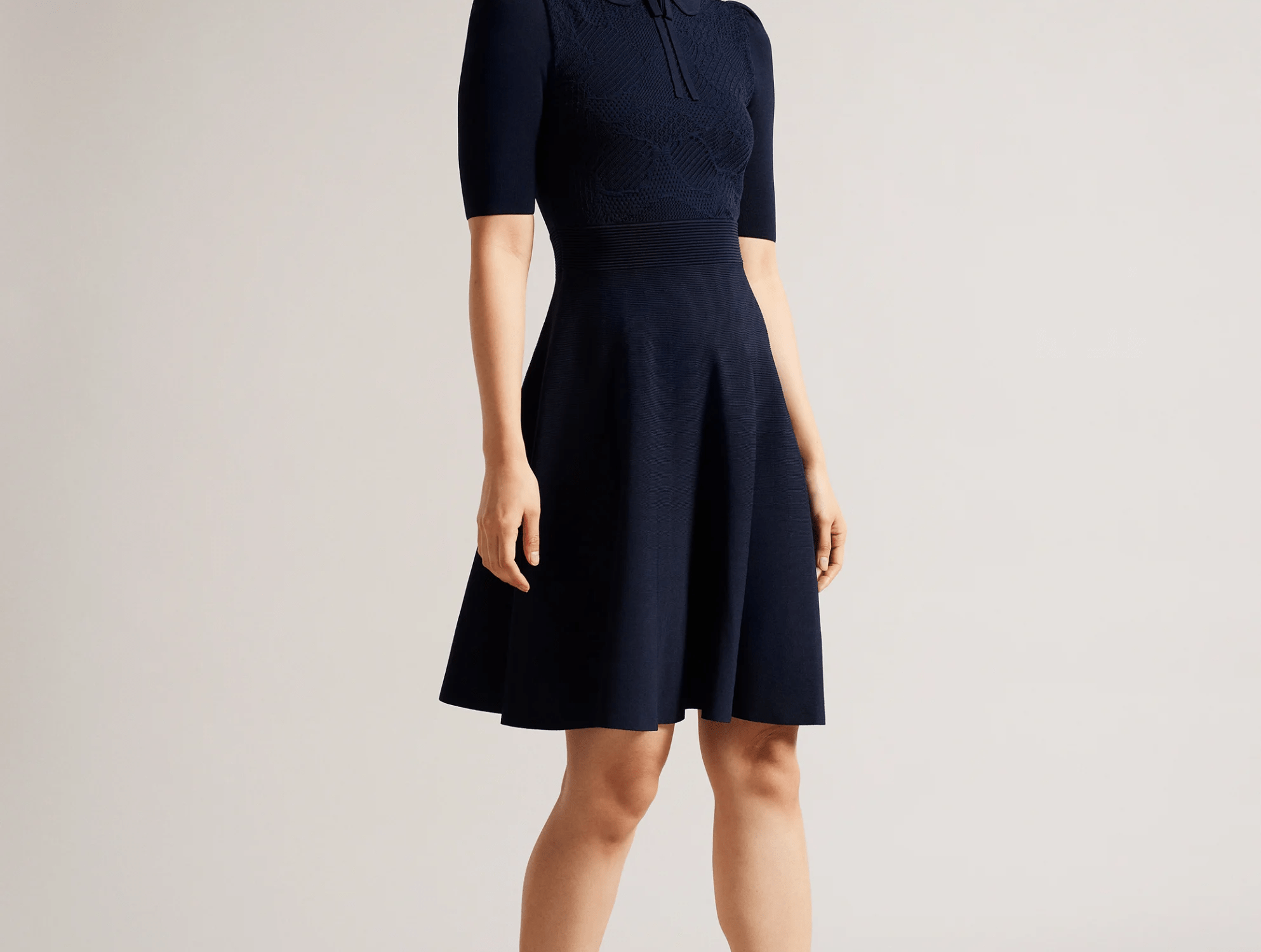 The HILLDER dress will have you looking every inch the classic beauty. This knitted number has a lovely fit and flare shape with a rounded collar that brings an irresistible touch of romance to your look.
