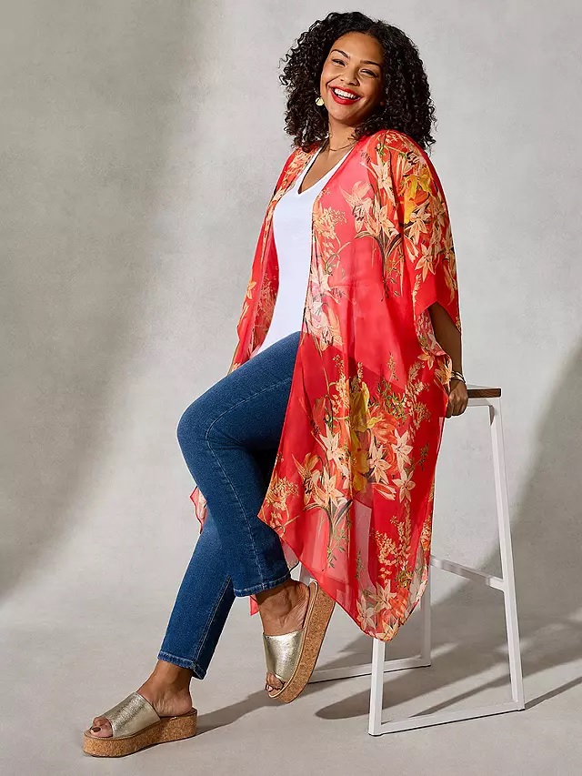 Alison wore a Live Unlimited Curve Tropical Floral Print Kimono Jacket in Orange £65, for This Morning on Friday 9th June 2023. Alison was styled by David O’Brien. Alison has also worn this kimono in Black.