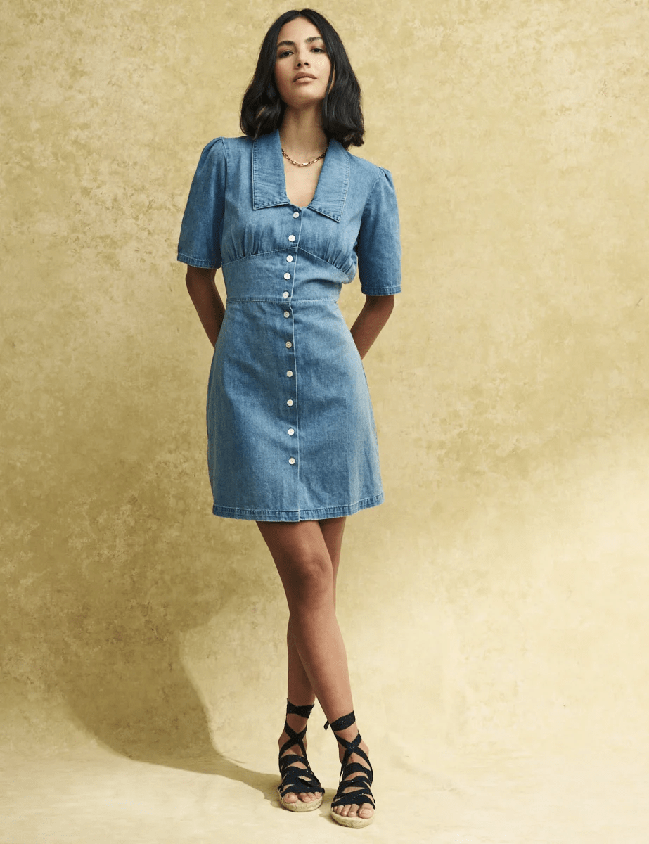 Daisy is back for another season in denim. This mid-blue wash mini dress is made from organic cotton with a button-through front and an oversized collar that feels so of-the-moment. Wears yours with strappy espadrilles for smart casual events in the sunshine.