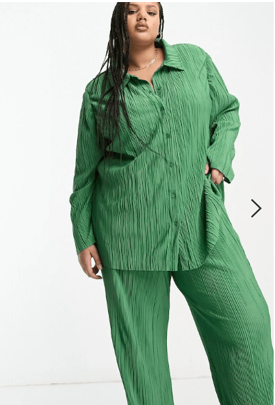 I believe Alison wore the matching Only Curve plisse wide leg trouser co-ord with side slit in green £21.