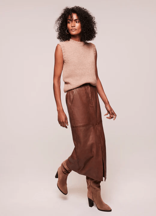 Made from the softest leather, this luxurious midi skirt is the ultimate investment buy for the current season. Style with neutral tones such as cream and camel and complete the look with gold jewellery.