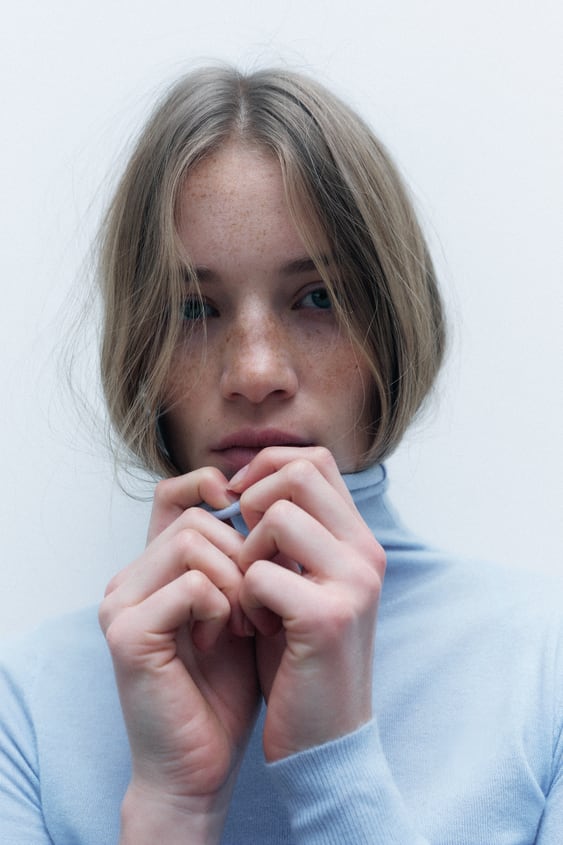 Josie wore a Zara Turtleneck Sweater £22.99 in Light Blue, for This Morning on Thursday 4th January 2024. Josie was styled by Rachael Hughes.