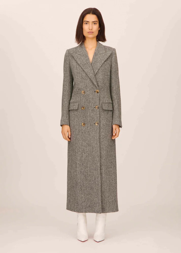 Claudia wore a Bella Freud Herringbone Tweed Bianca Coat £1,250 in Grey, for The Traitors on Friday 12th January 2024. Claudia was styled by Sinead McKeefry.