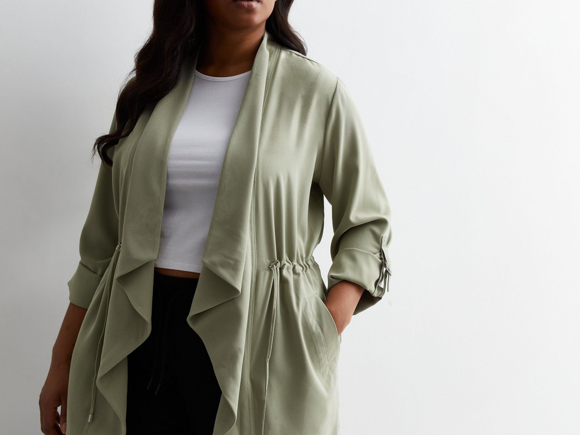 A stylish pick, this olive duster jacket boasts an effortless waterfall neckline and drawstring waist to create a flattering fit-and-flare shape. The perfect lightweight layer, throw it on over everything from jeans to midi dresses.