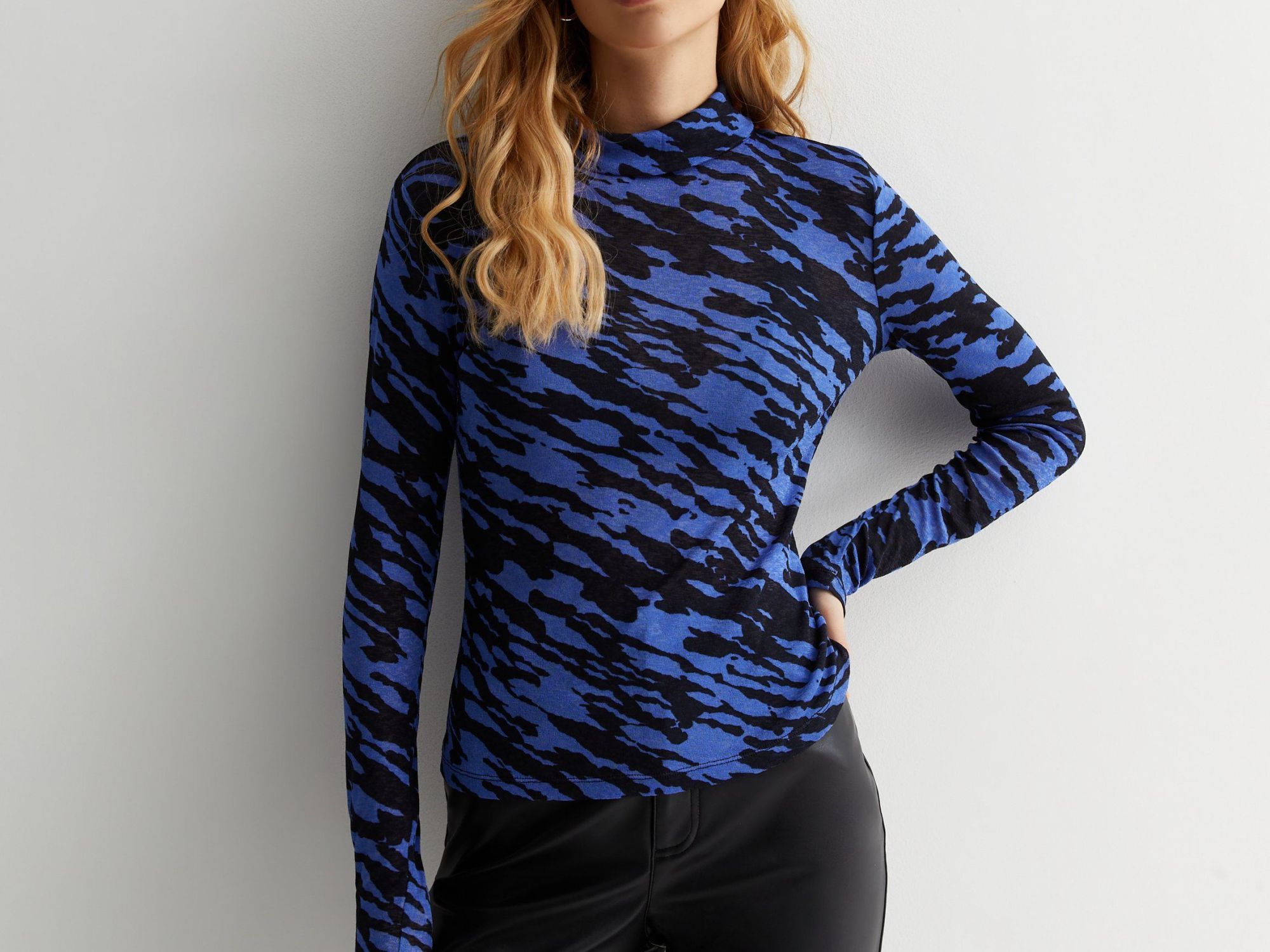 Its eye-catching print and soft jersey fabric make this blue top a must-have pick for autumn. The high neckline is super practical too, keeping you warm while also looking great layered underneath knitted vests or pinafore dresses.