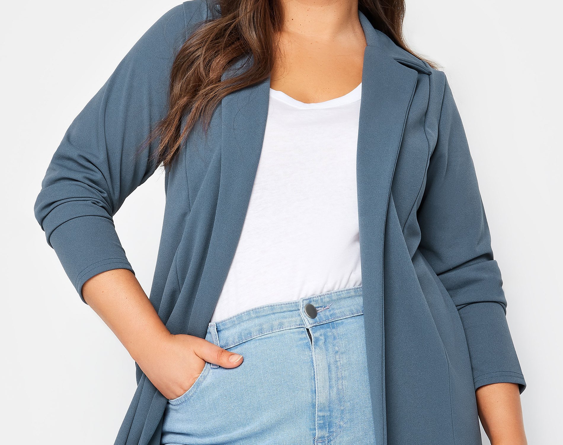 Alison wore a Yours Curve Blue Blazer £29.99, for This Morning on Tuesday 2nd April 2024. Alison was styled by Rachael Hughes.
