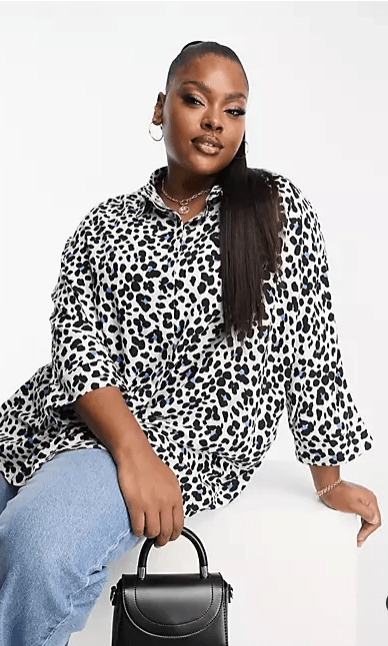 Alison wore an ASOS DESIGN Curve oversized long sleeve shirt in Blue Leopard Print £18, for This Morning on Monday 8th April 2024. Alison was styled by Rachael Hughes.