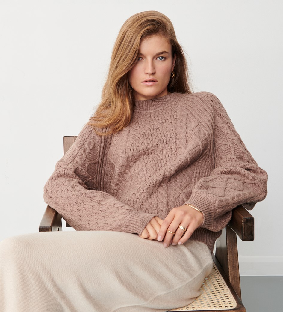 This chunky cable knit jumper is a timeless cold weather style. Made from a wool blend and cut for a regular fit, our Ellie is styled with a crew-neck and rib-knitted trimmings.