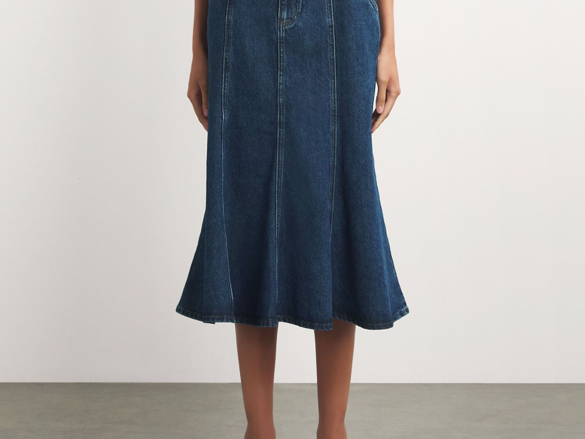 Crafted from denim for everyday ease and Western-inspired charm, this midi skirt boasts a flattering fit and flared silhouette that exudes a feminine allure. Simply dress it up or down to suit your occasion.