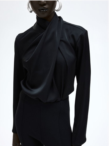 Claudia wore an H&M Draped Blouse £19.99 in Black, for BBC Strictly Come Dancing Week 8 Results on Sunday 10th November 2024. Claudia was styled by Sinead McKeefry.