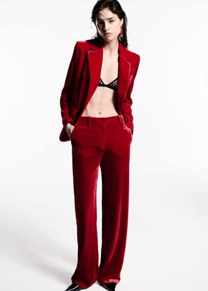 Cat wore the matching Mango Velvet Suit Trousers £59.99 in Strawberry. Straight design. High waist. Zip fastening on the back section. Co-ord.