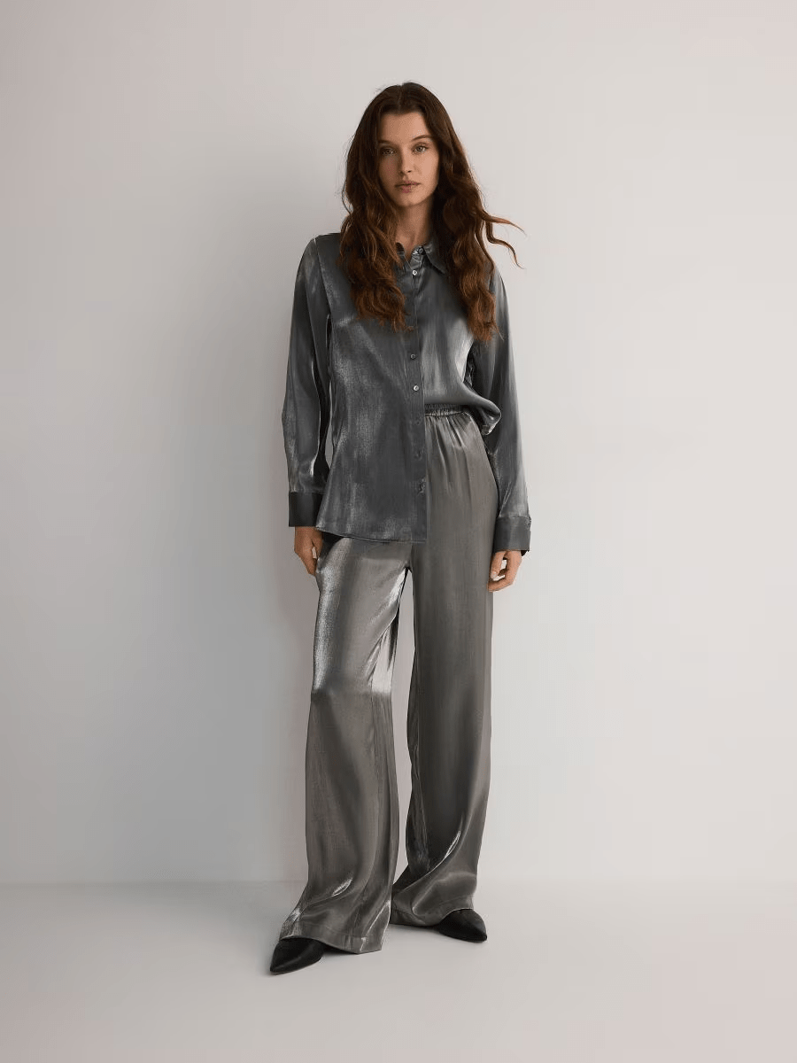 Sian wore the matching Reserved Viscose rich wide leg trousers £22.99 in Dark Grey.