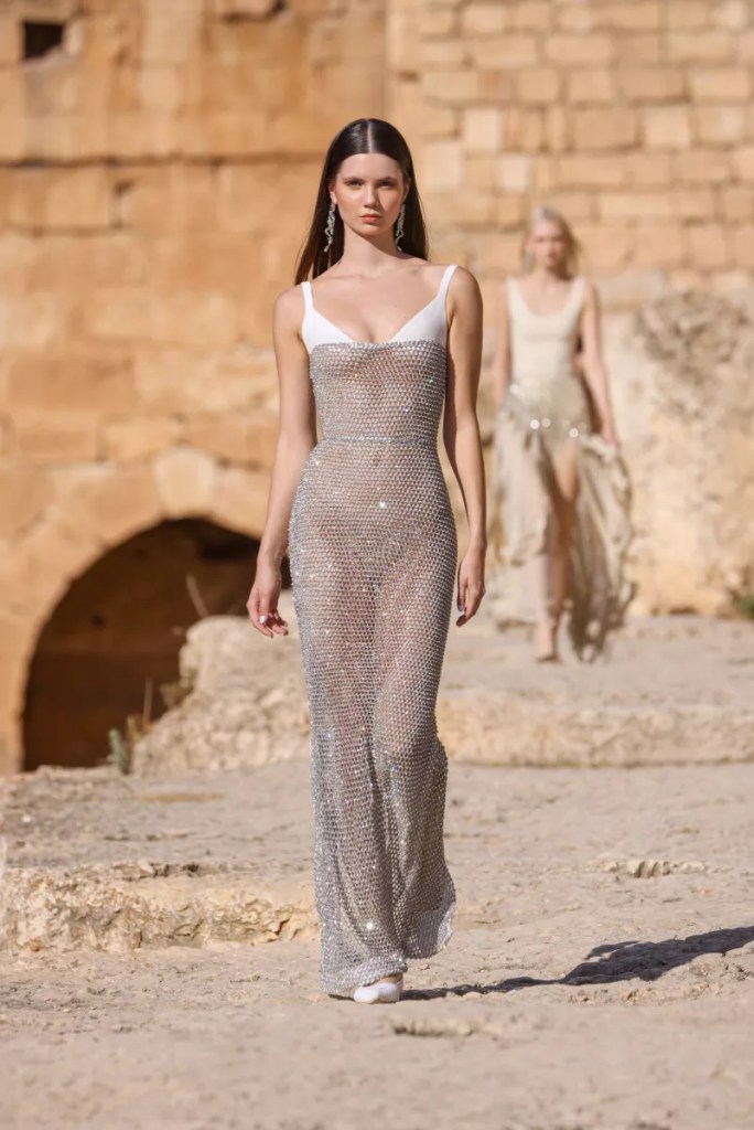 Holly wore a Georges Hobeika Sleeveless Beaded Illusion Dress £5,161 from the Spring 2024 Ready To Wear collection, for Dancing On Ice January 2025. Holly was styled by Danielle Whiteman.