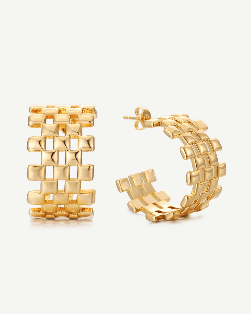 Cat’s earring are Maudella Immi Checkered Hoop Earrings £50 in 18k Gold Plate. Classy and sassy? These earrings are what your jewellery box is calling out for! Designed with a chunky open-hoop shape and a fun checkered pattern, these oversized earrings are a wardrobe classic. The geometric style is a modern take on an heirloom, vintage look – perfectly blending contemporary and classic so you can gracefully make a statement at every occasion, every day.