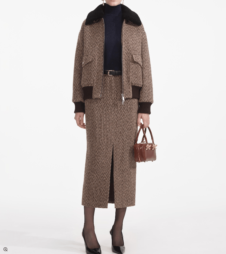 Country-chic at its finest, this skirt’s herringbone fabric pairs perfectly with sleek turtlenecks and glossy leather boots. Style with our matching jacket for a relaxed take on the skirt suit.