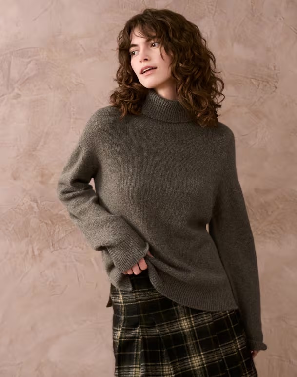 This luxurious, relaxed-fit jumper has been knitted using only the finest, softest Scottish cashmere imaginable using zero-waste whole-garment-machine technology and finished with side splits, ribbed trims and a cosy polo-neck.