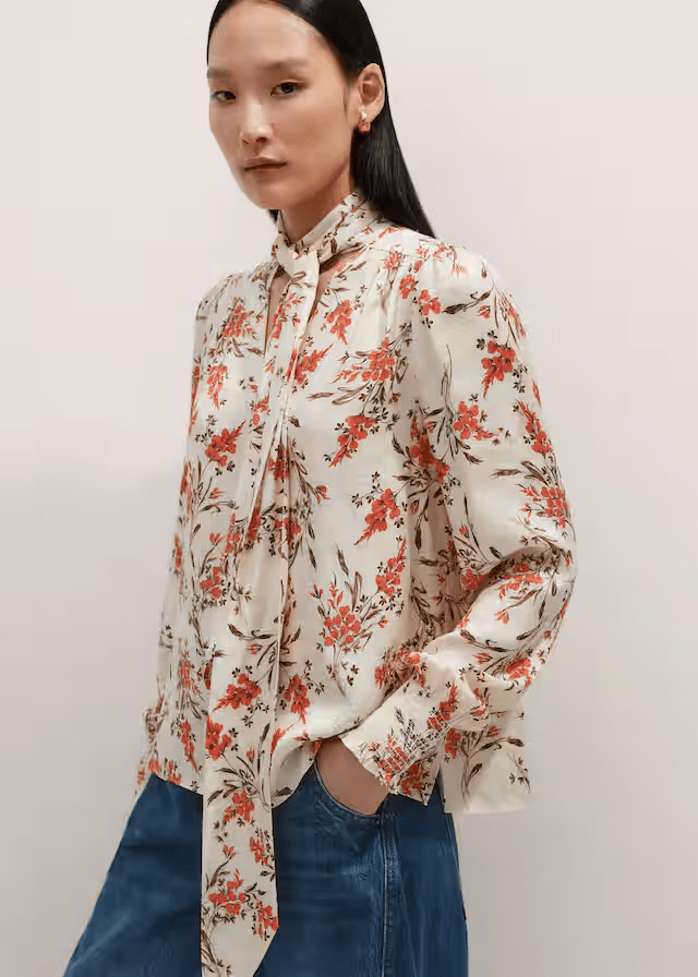 Scattered with a floral print, this blouse is elevated with a pussybow tie and falls to a streamlined mid-length to ensure a bulk-free finish when layered or tucked into high-rise trousers.
