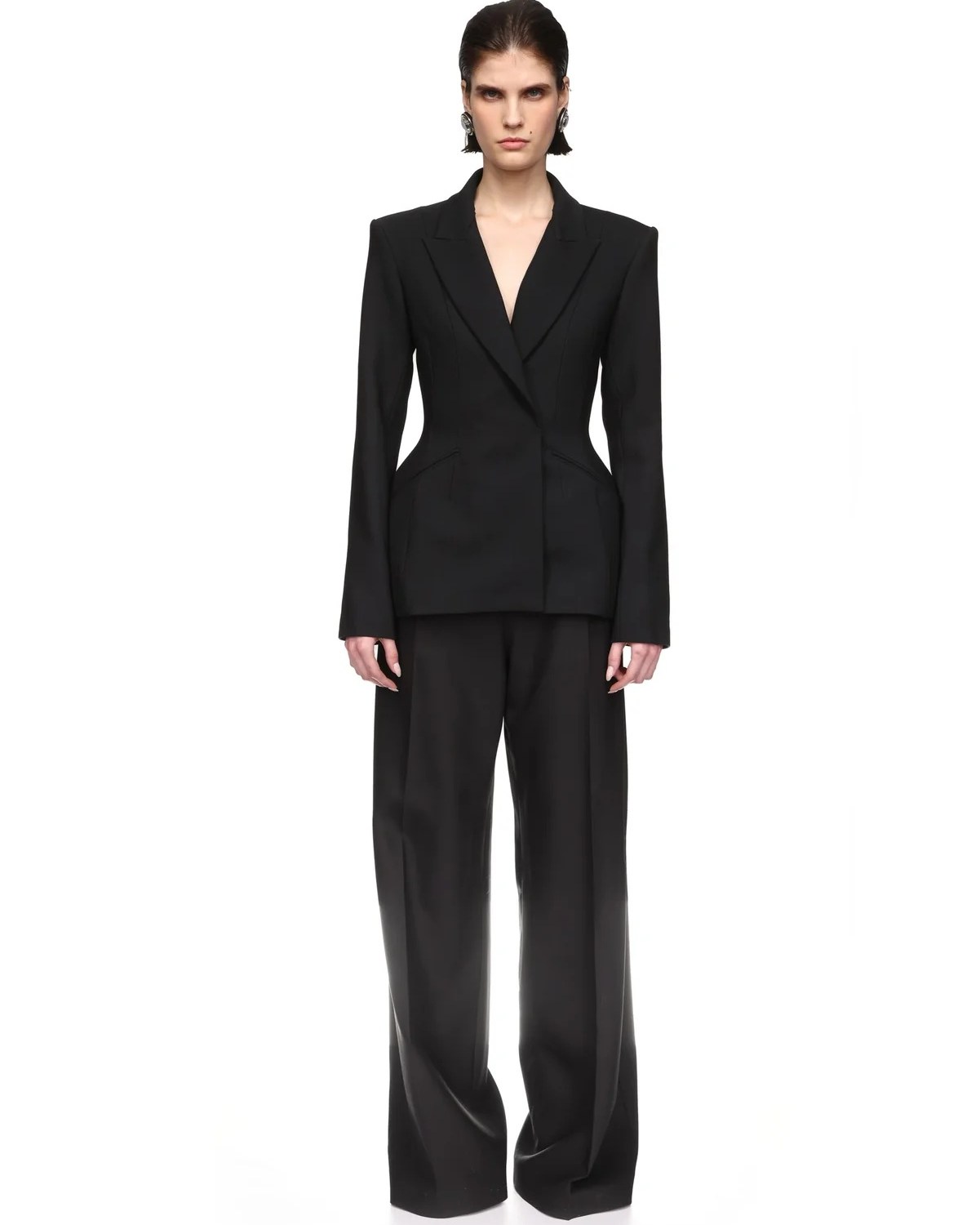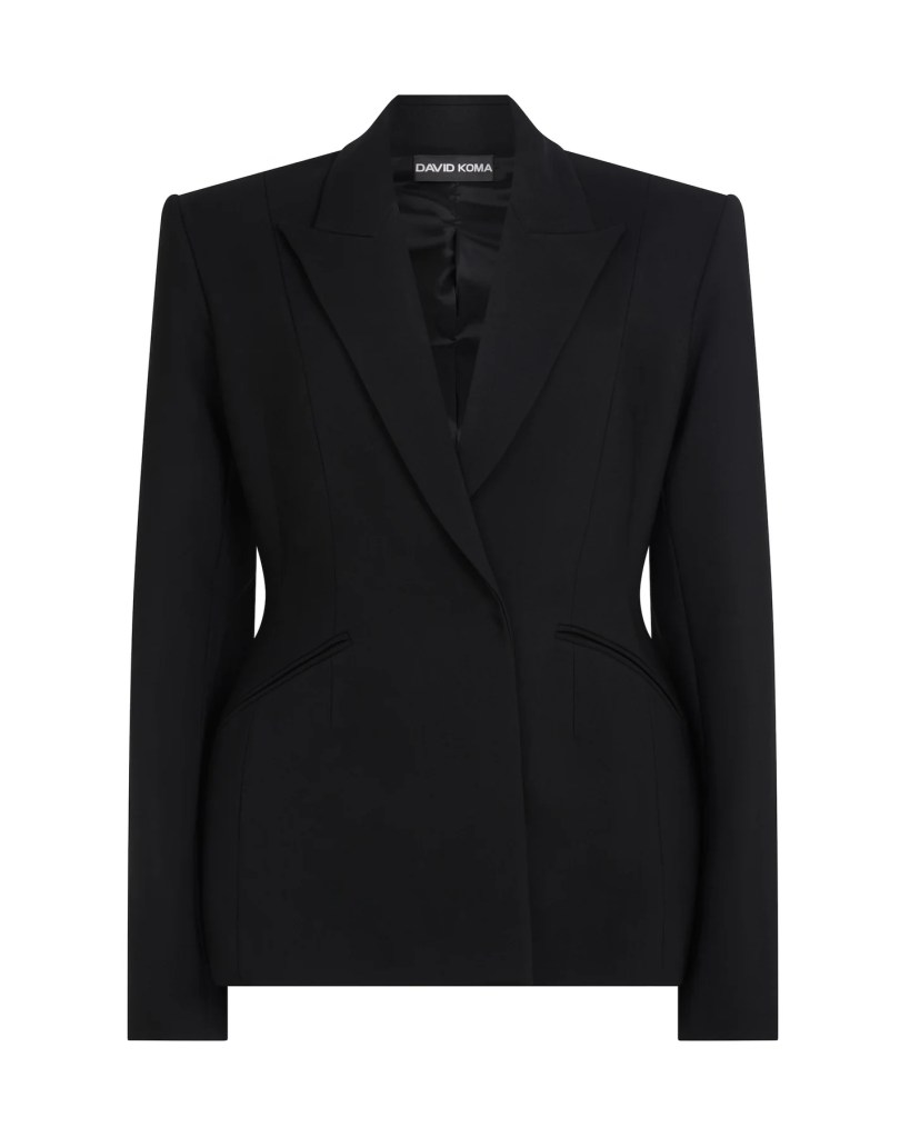 Holly wore a David Koma suit, for The Graham Norton Show on Friday 7th Febuary 2025. Holly was styled by Danielle Whiteman. The jacket looks like this David Koma Hourglass Waist Tailored Jacket £1,170 in Black.