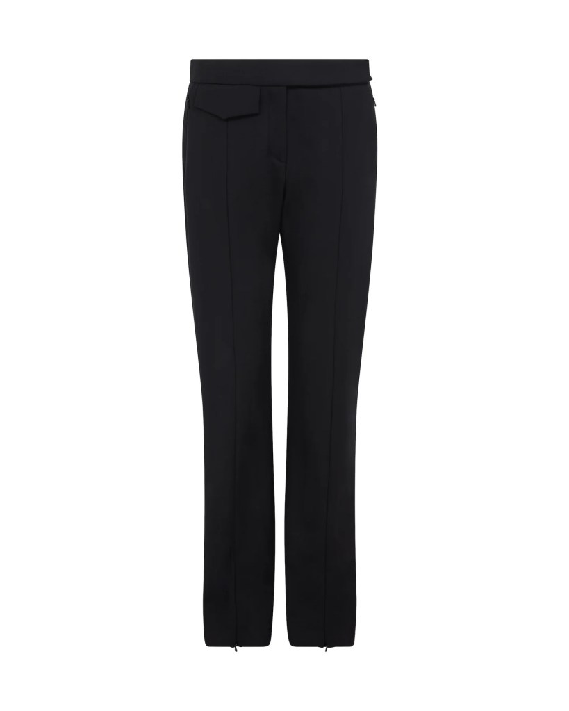 Holly’s trousers look like these David Koma Tailored Wool Trousers in Black £855. Made in the UK with bonded wool, these trousers have pockets and a slight flared effect with zips at the ankles. They fasten with a zip and hook closure at the front.