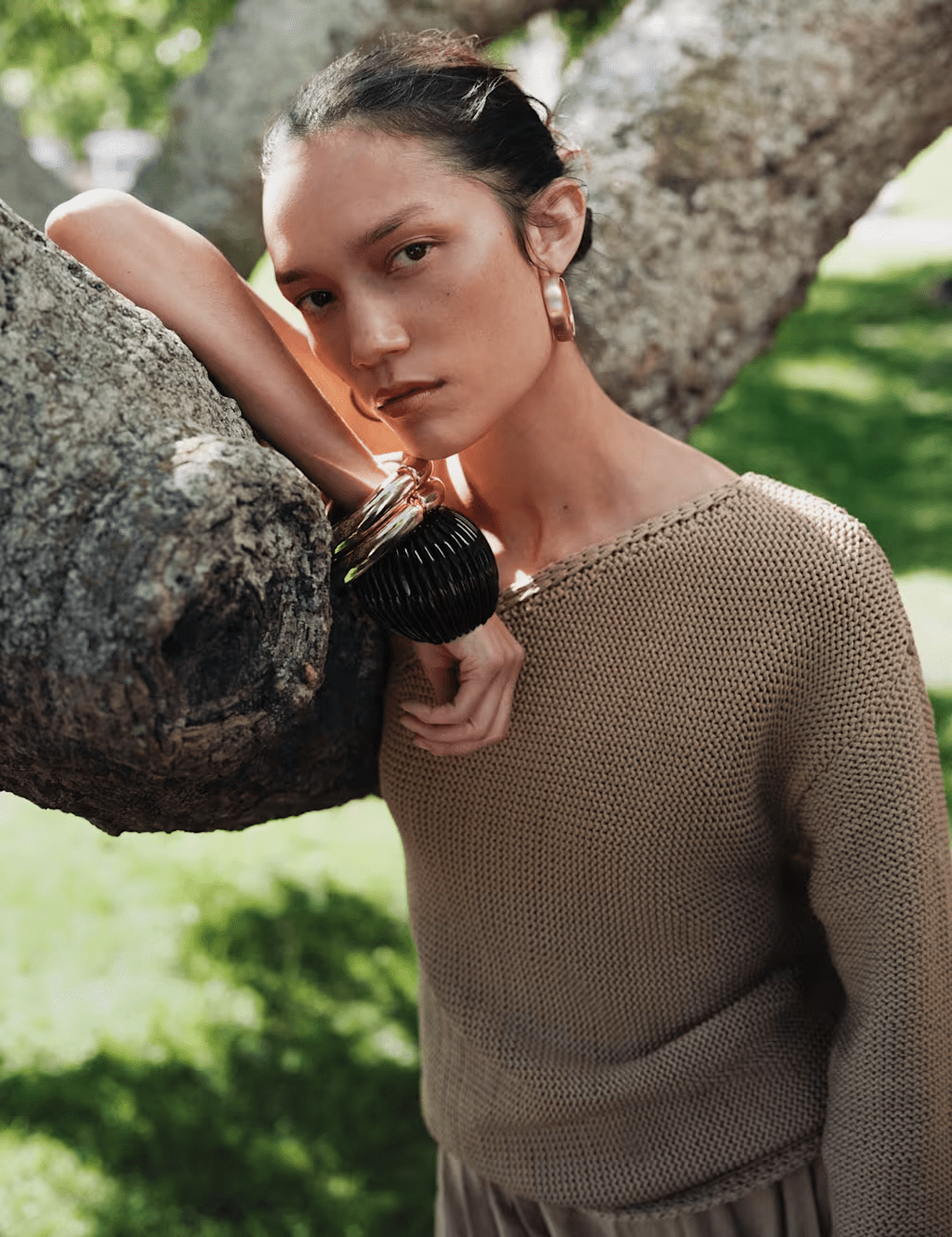 Cat’s trousers are Boden High Rise Wide Leg Jeans £98 in Ecru. Woven with just the right amount of stretch, these high-rise, wide-leg jeans have a relaxed feel – the added ease means a little more room to move. For a more fitted look, we recommend sizing down.