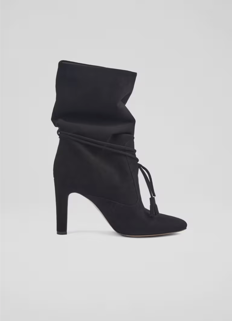 Cat’s boots are LK Bennett Eliza Black Tassel Ruched Suede Ankle Boots £343. Meet Eliza, our short suede ankle boots for women with elegant details. Featuring a timeless almond toe and ruched detailing, these black Italian-made ladies’ booties showcase playful tassels that add character to every step. The luxurious leather upper brings texture to your outfit, perfectly balancing smart and casual. Style with tailored trousers for work or a midi dress for dinner dates. These short woman’s booties will become your go-to footwear this season. Cat first wore these in October.