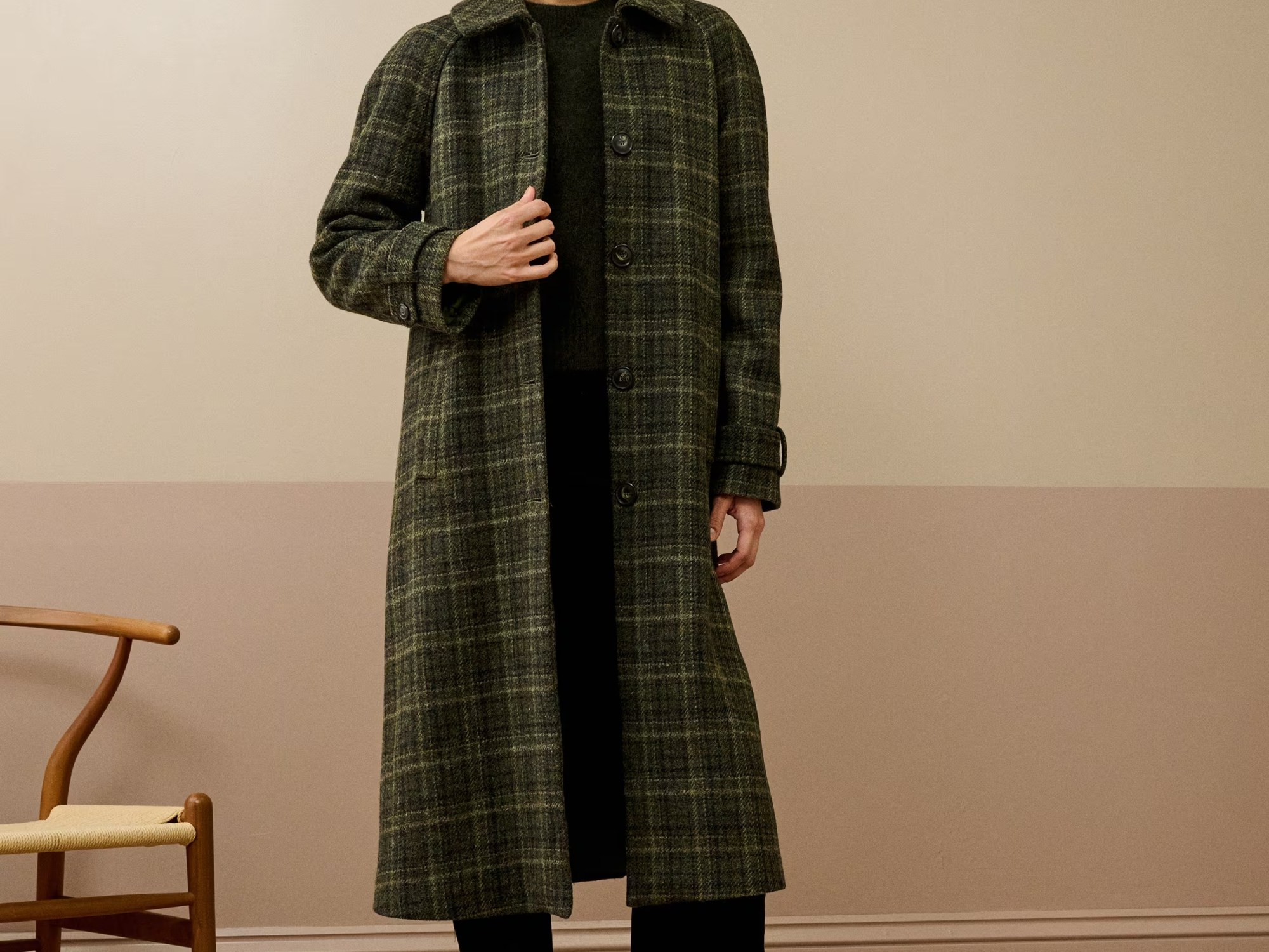 Fans of British heritage dressing with a twist will love this forest-green checked coat, expertly woven in the Scottish Outer Hebrides using authentic Harris Tweed cloth, then tailored to perfection in our London atelier.