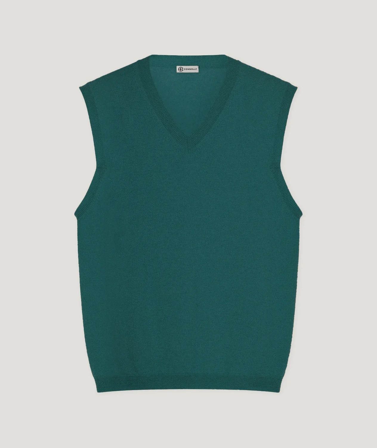 The Connolly Vettel Vest offers a subtle twist on a classic style. Knitted in 100% top-grade cashmere, it is fully fashioned and hand-linked in Italy. Design details include the V-neck apex, which reappears at the armholes, playfully accentuating the V-shape. This vest is named after Sebastian Vettel, one of the most significant F1 drivers and the youngest Formula One world champion. The relaxed fit makes it versatile—perfect for wearing next to the skin or layered over a shirt.