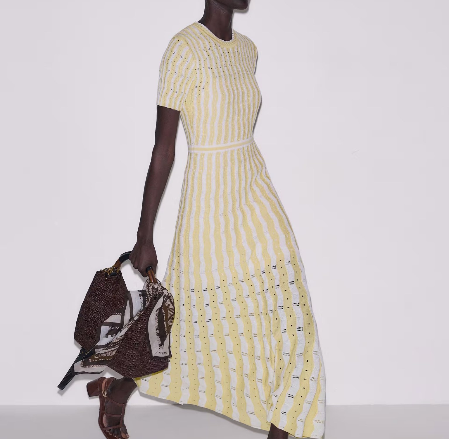 Holly wore a Me + Em Stripe Knit Maxi Dress £250 in Yellow/Cream, on Tuesday 24th March 2026.