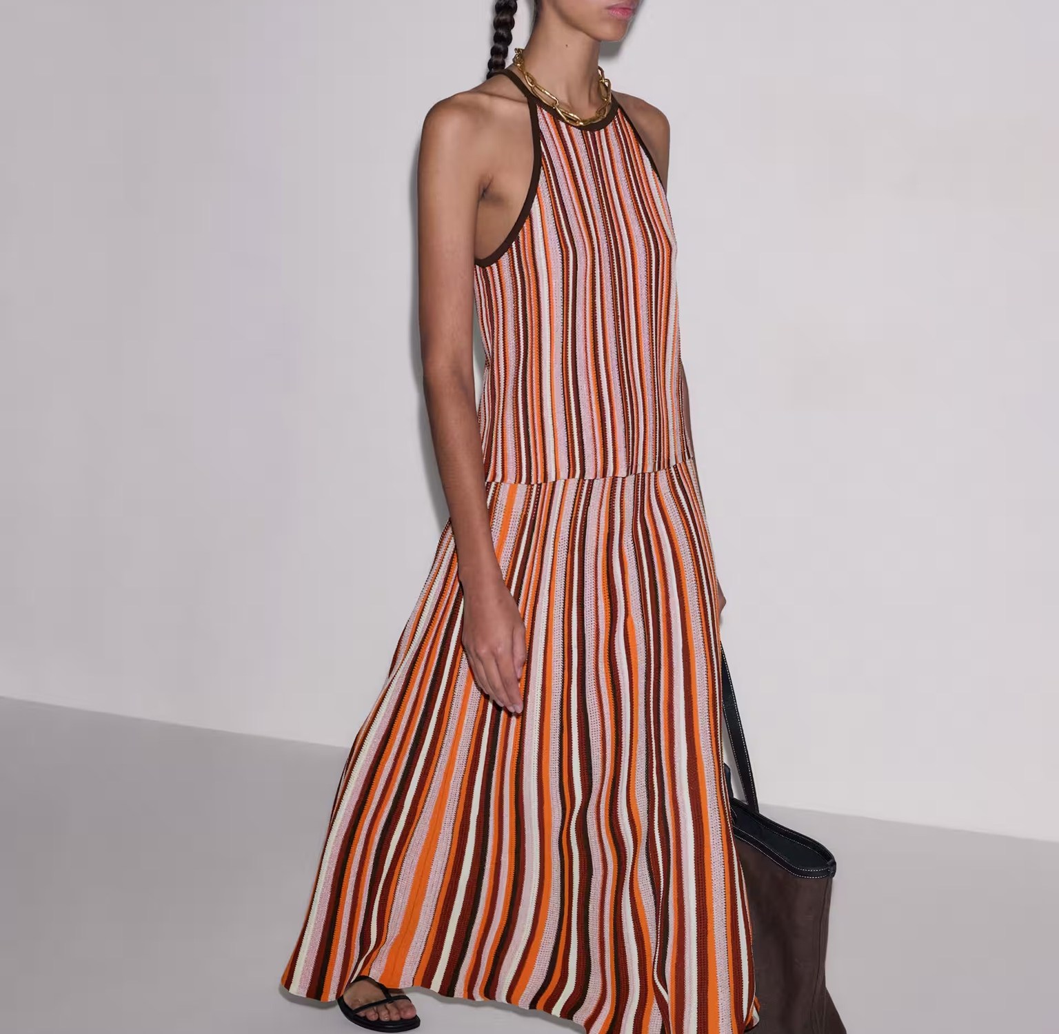 Cat’s skirt is the matching Me + Em Stripe Knit Maxi Skirt £195 in Cinnamon Multi. A refreshed take on spring/summer knitwear, this skirt incorporates our Cinnamon hue for colour-matched styling with other mix + match pieces. It’s suspended from an elasticated waistband for AM-PM comfort.