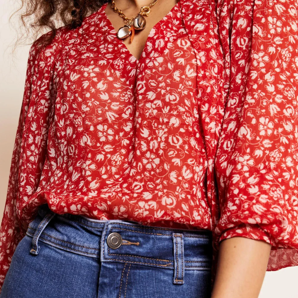 Cat Deeley Red Floral Blouse This Morning April 2024