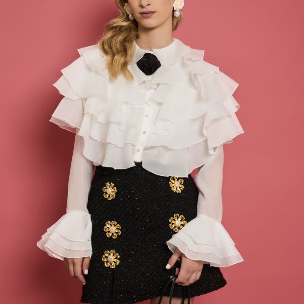 Claudia Winkleman Organza Ruffle Top The Traitors 2025