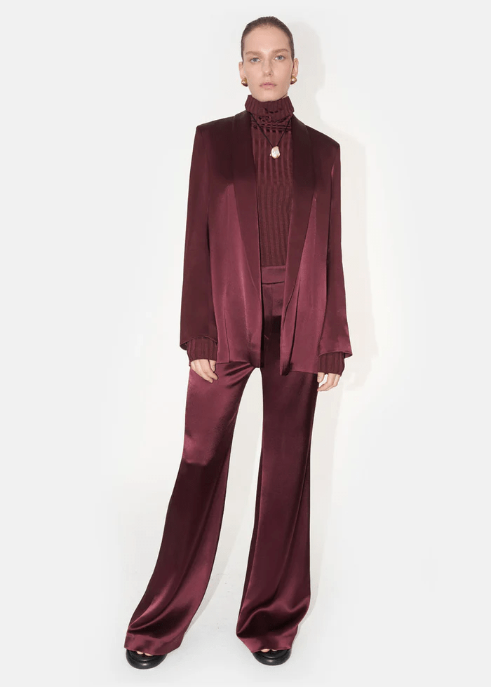 Cat Deeley Oxblood Satin Suit This Morning October 2024