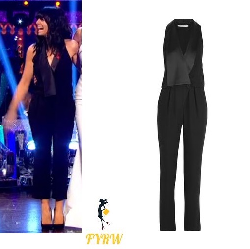 Claudia Winkleman Black Satin Lapel Jumpsuit Strictly Come Dancing Week 8 2017