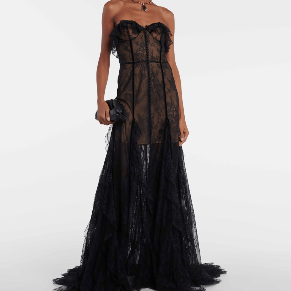 Claudia Winkleman Black Ruffle and Tulle Dress The Traitors 2025