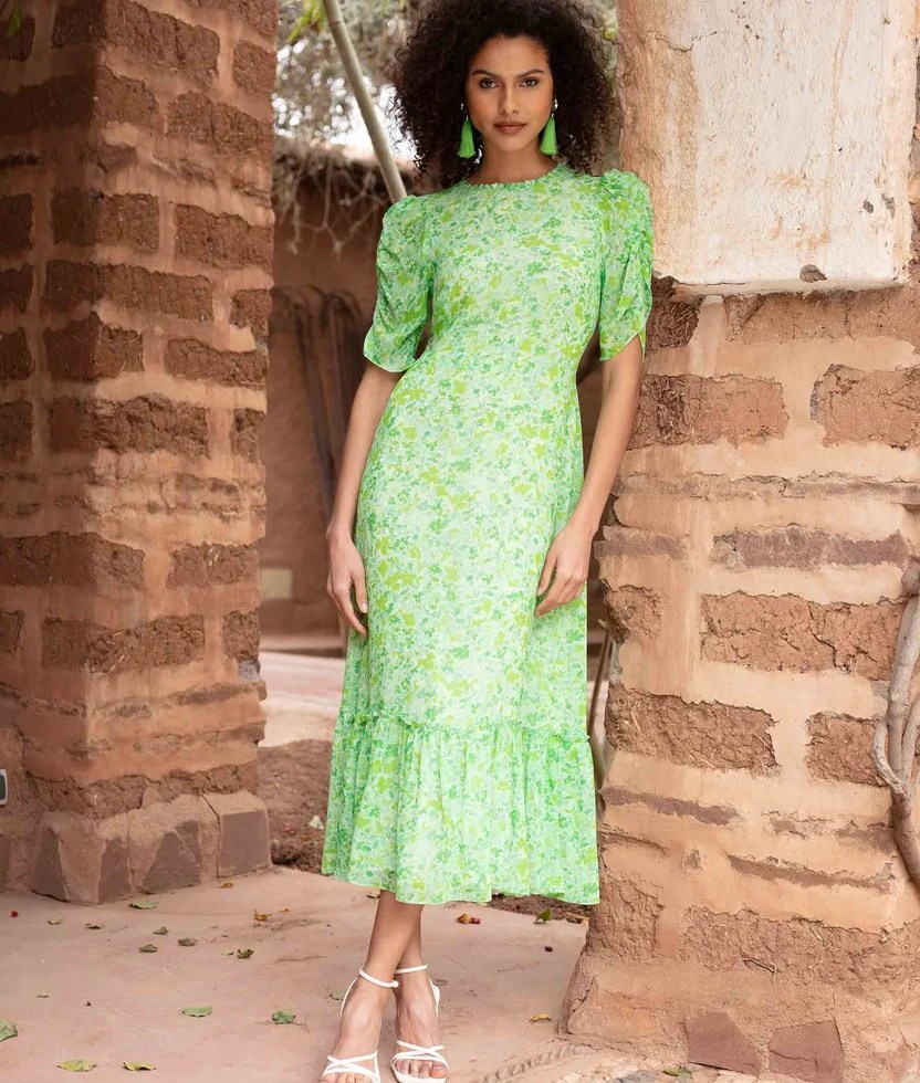 Holly Willoughby Green Floral Frill Neck Dress This Morning April 2023